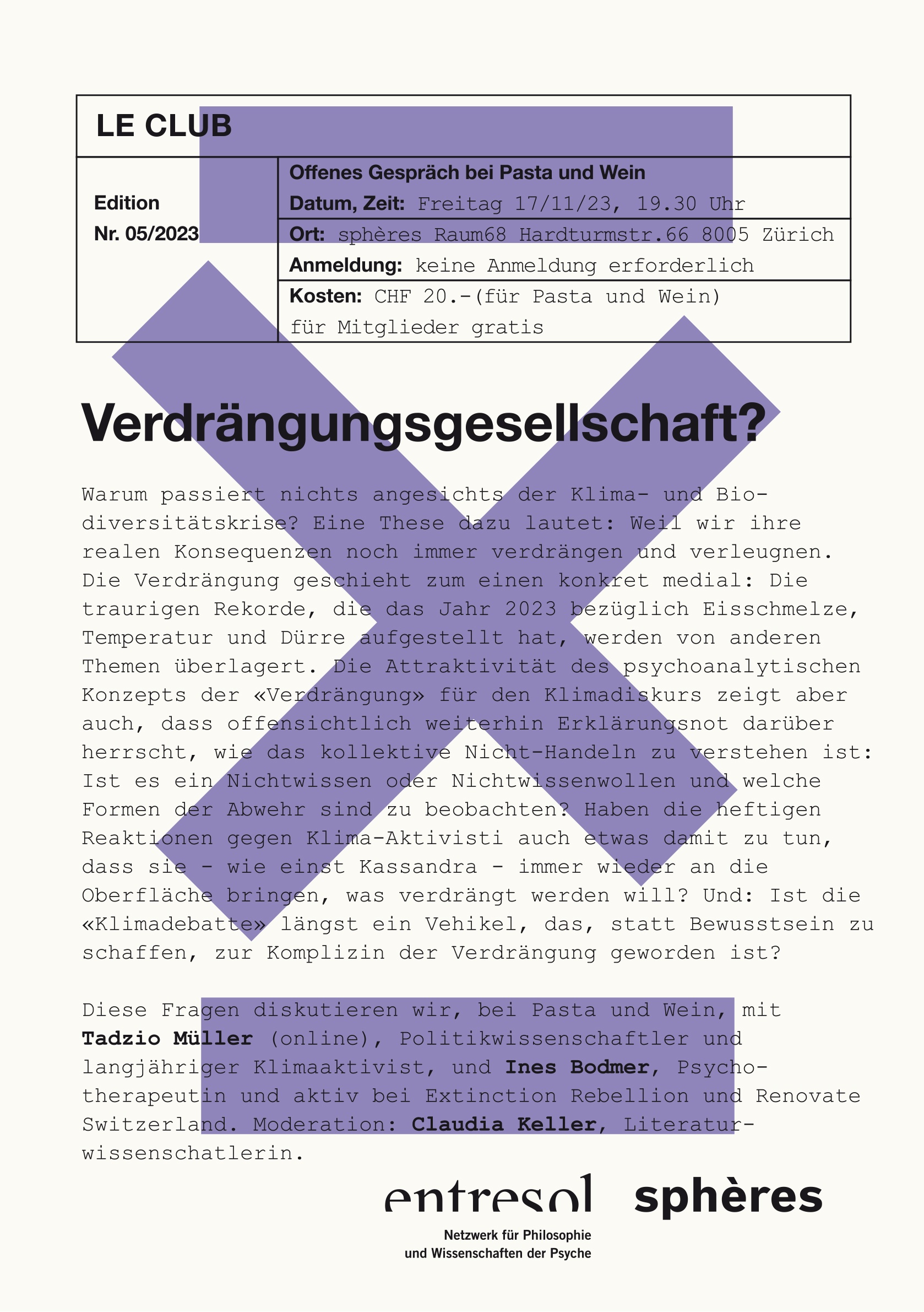 Anmeldung: nicht erforderlich Kosten: CHF 20 (für Mitglieder Entresol gratis)
